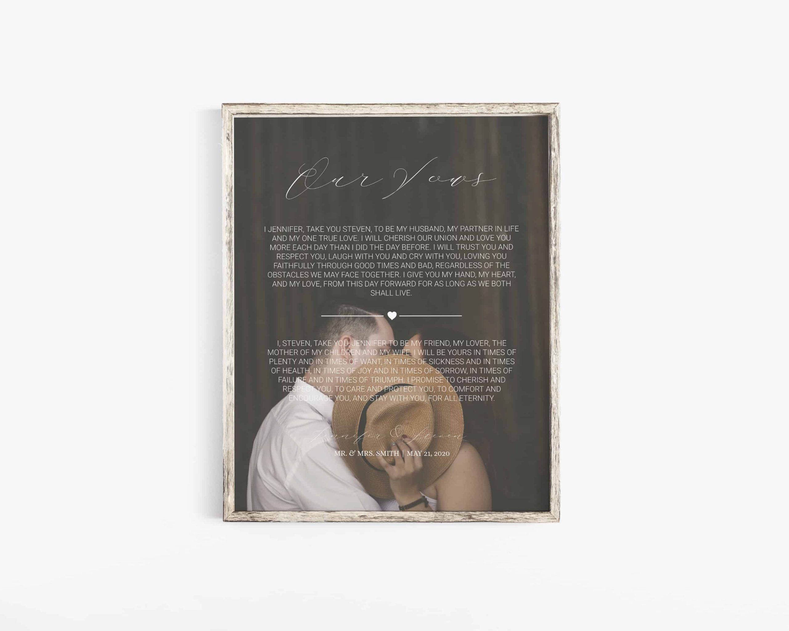 This unique Wedding Photo Our Vows Wall Art printable is a perfect decoration for any room in the home or wedding day. You’ve got the perfect housewarming or wedding gift.